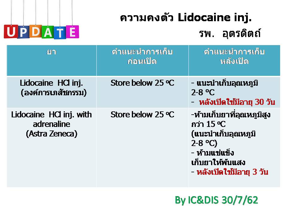 - ความคงตัวของ Lidocaine inj. หลังเปิดใช้