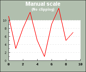 When auto scaling is used no data points will ever be outside the plot area since the scaling will make sure it covers the dynamic range of the data. However, when setting the scale manually there is always the risk that some data points are outside the specified scale. This could then lead to the result shown in Figure 14.13 To avoid this situation it is possible to enable clipping to the plot region by calling the method