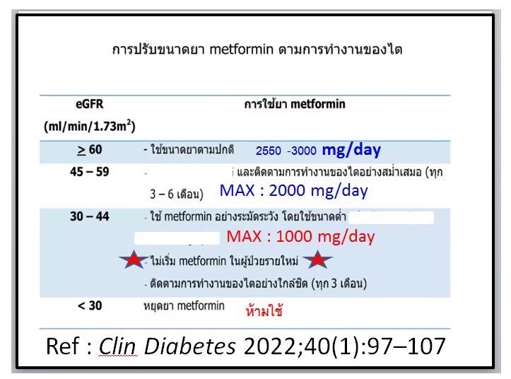 การปรับขนาดยา metformin ตามค่า eGFR |